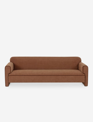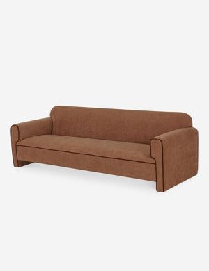 The Romy sofa brings a modern edge to the classic roll-arm silhouette. Tonal contrast piping highlights the soft lines for a tailored finish in the room. We love this large sofa for a space that balances refined design with everyday comforts.