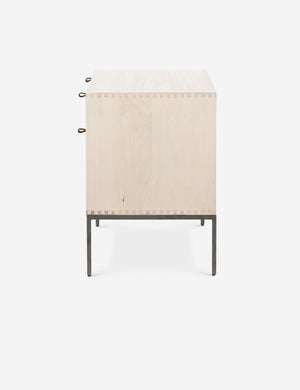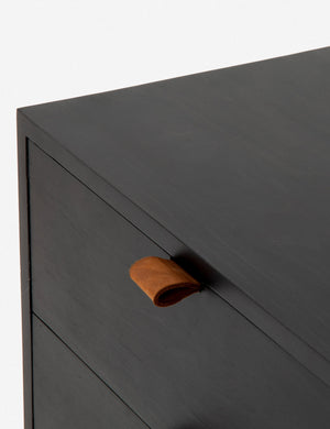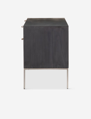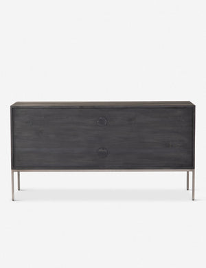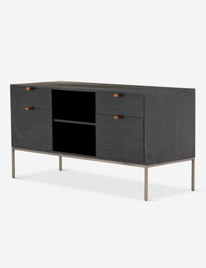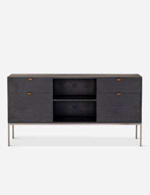 Keep your office style grounded (and super organized) with this wooden filing console. Features elements of mid-century aesthetics like a black wash, slim iron base, and top-grain leather drawer pulls.