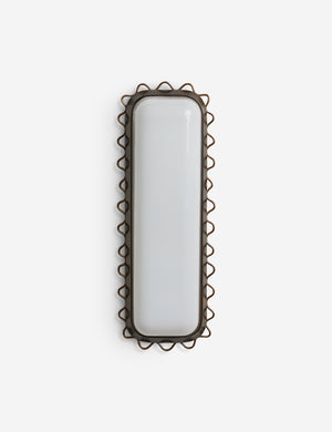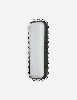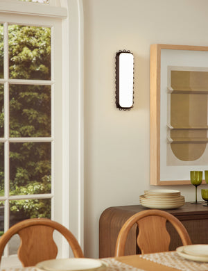 Bring a touch of whimsy to your walls with our Savita sconce. The long glass shade sits in a metal case with a wavy trim that strikes instant interest. We love this sconce as an artful update for a modern lighting design.