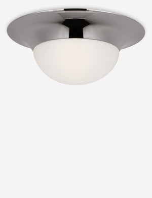 Sleek design should stun with simplicity. The Seeger flush mount is set for soft impact with its sculpted lines and white glass shade. The smooth profile and compact size make it the perfect ceiling light for bringing a modern edge to a hallway or small living space.