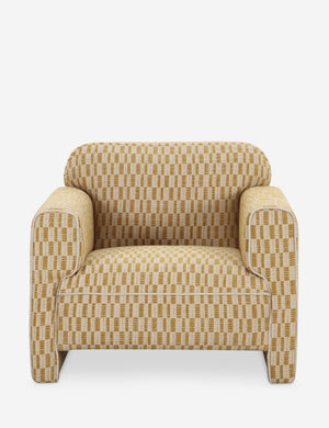 The Sibley accent chair brings an artful edge to your space with its modern form and patterned upholstery. Its inward rolled arms and curved back soften the squared profile for an attractive play of shape in the room. The chair's sophisticated silhouette is set off with contrast piping and fully upholstered legs for a statement moment made for comfort.