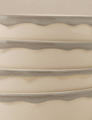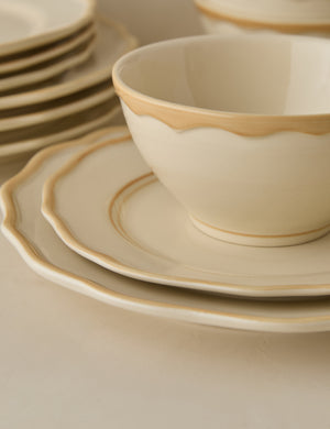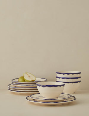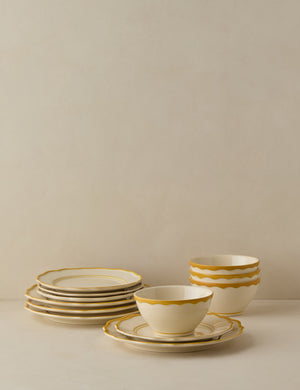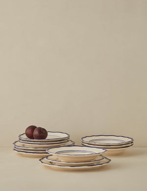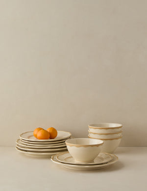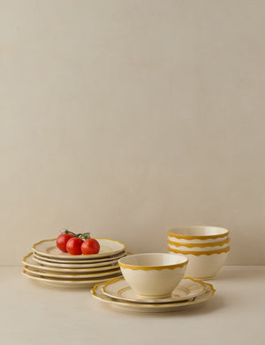 Elegance at the table is all about elevating the simple touches. From lovingly crafted pasta to your lightest summer fare, this ceramic dinnerware sets the stage for refined dining. With classic silhouettes and a hand-painted rim, the design refreshes a timeless look. Designed in New York and crafted in Portugal, Madison Maison brings bold style to a fine tradition.
