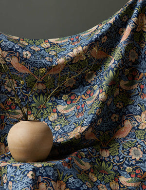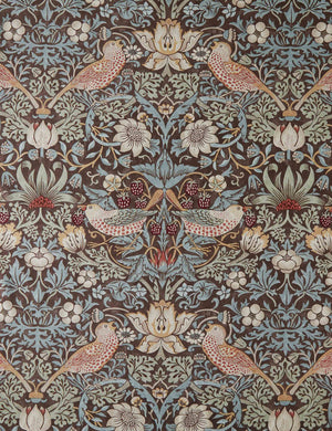 This textile exquisitely showcases one of Morris & Co.'s most sought-after patterns, Strawberry Thief, influenced by the thrush that would fly in and steal the fruit from famed Arts & Crafts textile designer William Morris's kitchen garden. This fabric lets you style a bespoke touch for any upholstery, curtains, or throw pillows in your home.