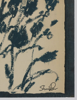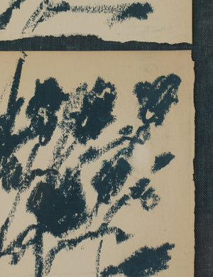 We love the delicate elegance of this botanical silhouette. The piece features floral forms in contrast against a soft cream backdrop, sectioned and bordered in black—the perfect addition to a refined curation. The artwork is float-mounted and matted for a striking presentation.