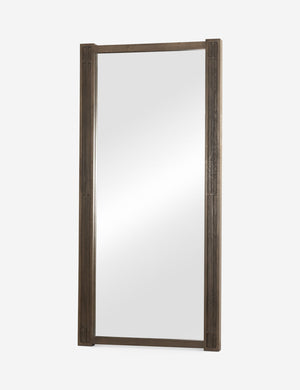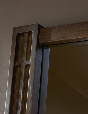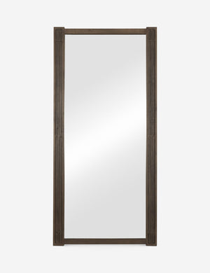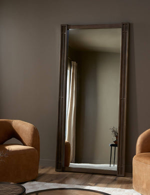 The Suri mirror offers a grounded take on traditional design with its striking oak frame. Vertical rails highlight the relief-carved panels, recalling the minimalist design of Japanese room screens. This tall floor mirror is a statement piece that layers warmth and texture into your entryway or bedroom.