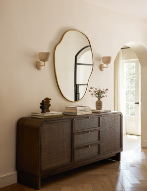 Keep it timeless for a look that's always fresh with Suzette. The collection's rounded oak frames feature grasscloth paneling for a soft, airy feel full of natural texture appeal. Spacious storage with removable shelving and soft-close drawers brings a dynamic touch to this sideboard.