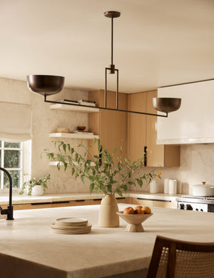 Dome shades bring a soft brilliance to this linear chandelier. Whether in your entryway or over a kitchen island, this modern chandelier offers a brilliant pour of light. The angular frame sets off the two-light design with a clean, streamlined feel.