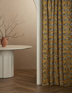 Vintage inspiration refreshes the room in this signature curtain design. Drawn by Sarah's son and styled into an intricate motif, this tiger print brings graphic intrigue to your wall decor. This window treatment is from our exclusive Sarah Sherman Samuel collaboration and features all the trademarks of her warm, edited style.
