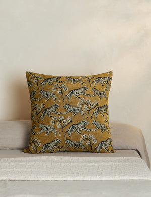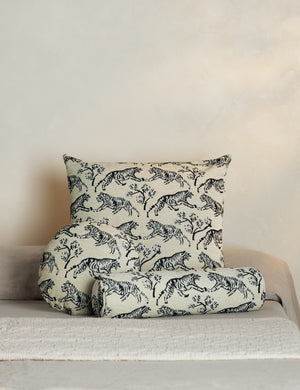 Vintage inspiration gets a fresh touch in this unique throw pillow. Drawn by Sarah's son and styled into an intricate motif, this tiger print offers graphic intrigue for a sophisticated feel on your sofa and in the room. This accent pillow is from our exclusive Sarah Sherman Samuel collaboration and features all the trademarks of her warm, edited style.
