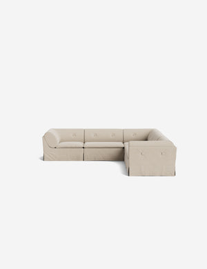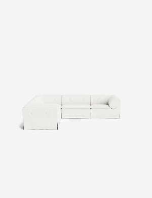 Crisp lines meet cozy proportions in the Trudy seating group, bringing a tailored sensibility to its modular design. The sectional format brings it all together. Contrast details and curved forms shape a lounge-ready setup with room to stretch out. This sectional sofa is from our exclusive Sarah Sherman Samuel collaboration and features all the trademarks of her warm, edited style.