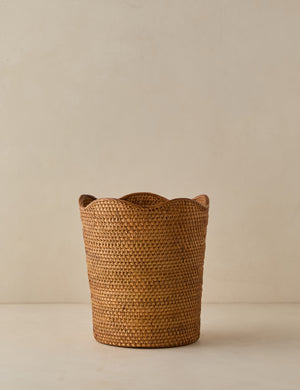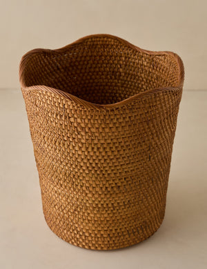 Bring a fresh look to an everyday essential with this scalloped rattan waste basket. The intricate weave offers natural texture touch with a durable design. From bedroom to bath to your home office edit—this waste bin is a chic accent for livable design.