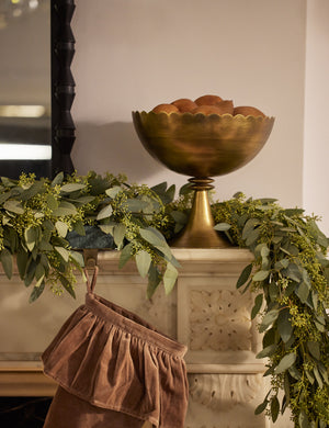 Our Villers compote bowls add a touch of luster to your tablescape. Their scalloped tops and staggered sizes are the perfect way to bring some dimension to your curation, whether on a console or styled as a centerpiece. Add some color and texture with a collection of matchbooks or pinecones or a peel-on fruit display.