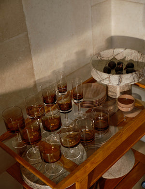 Kelly Wearstler has forged a global luxury lifestyle brand with an eye for vibrant design. The celebrated interior designer brings her soulfully sophisticated style to the table in this latest collaboration with Belgian design firm Serax, whose reputation for the exceptional makes the perfect match. The Zuma glassware brings a sleek edge to any table with streamlined shapes featuring thick bases and a beautiful ombre tint.